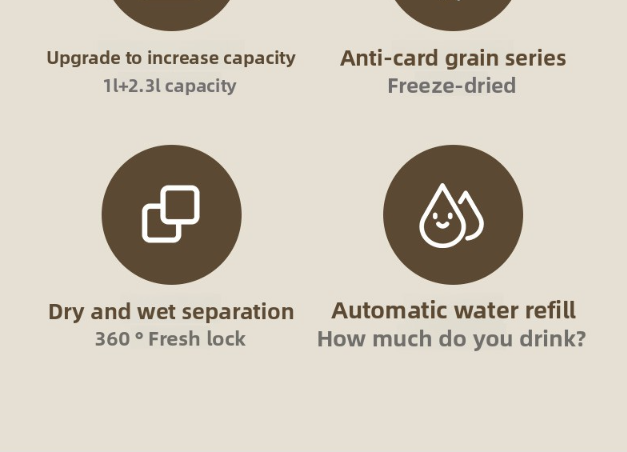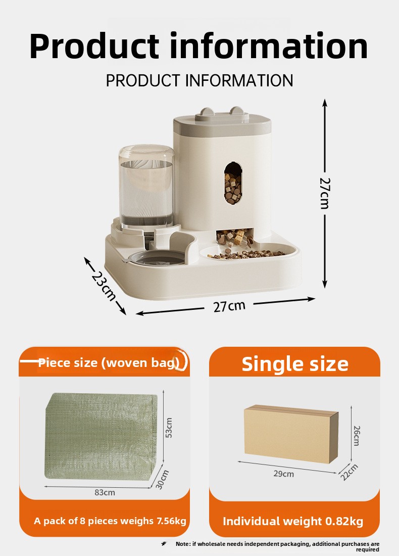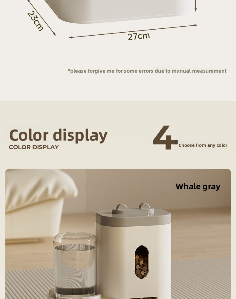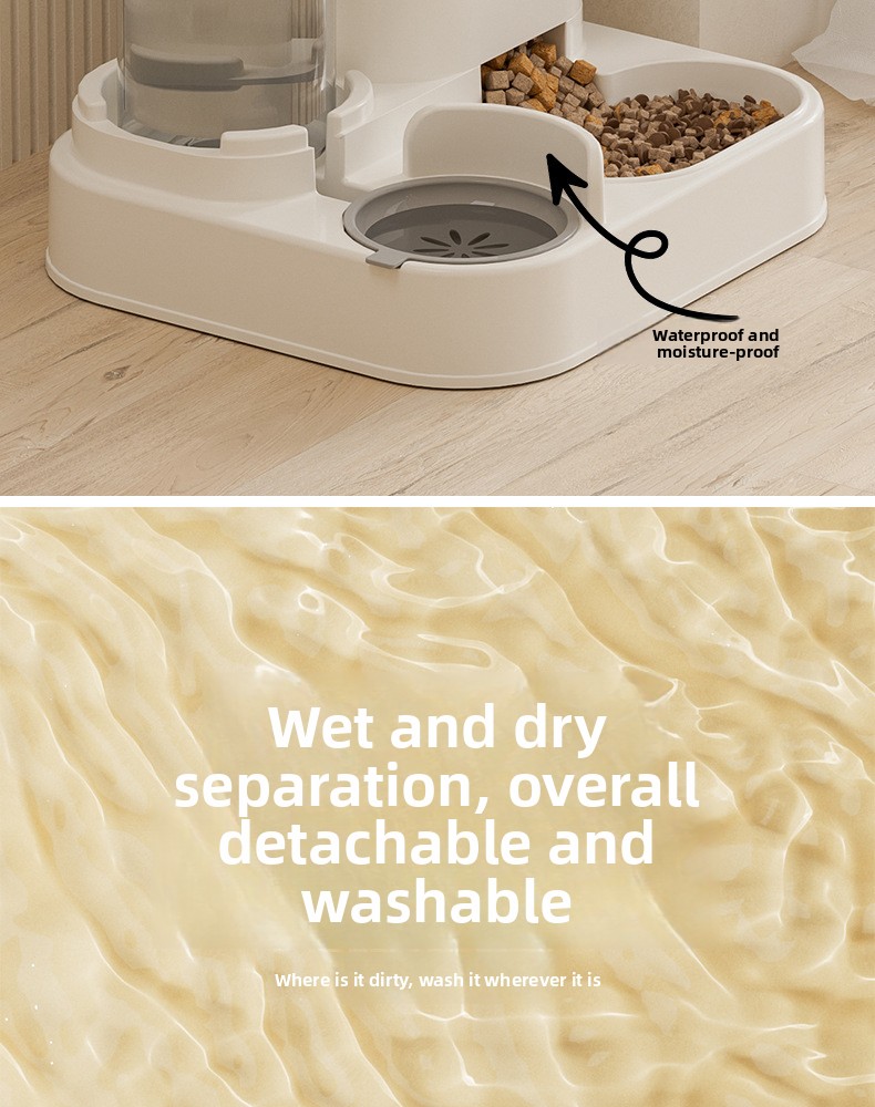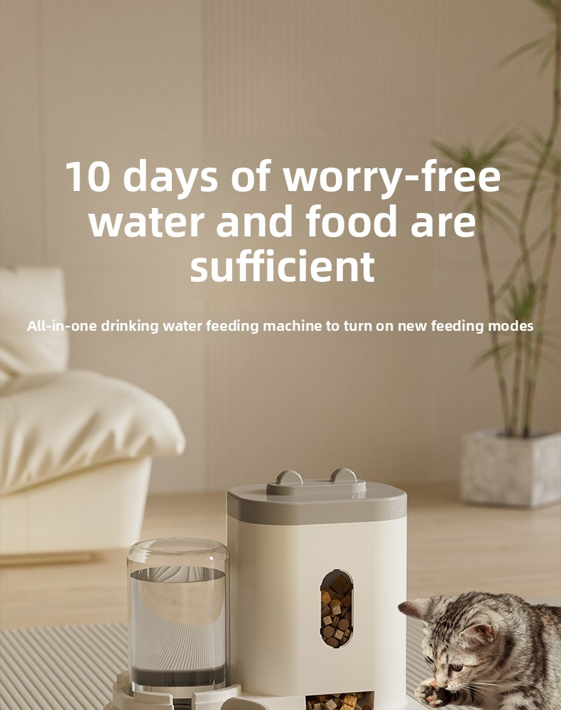 Automatic Feeding: Two-in-one design combines automatic feeding and water dispensing for pets.