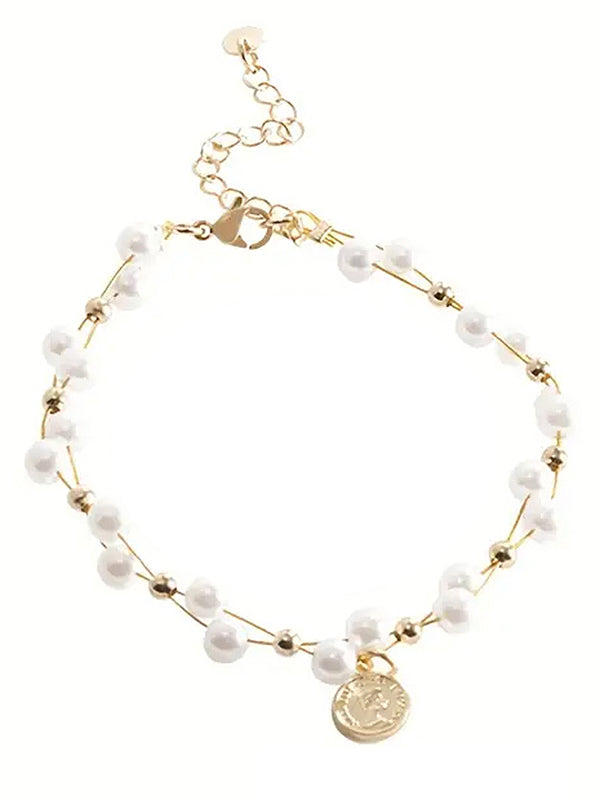 DOUBLE LAYER PEARL BRACELET : Size- PENDANT 0.3 X 0.3 INCHES LENGTH 7 INCHES EXTEND TO 9 INCHES : Color- GD