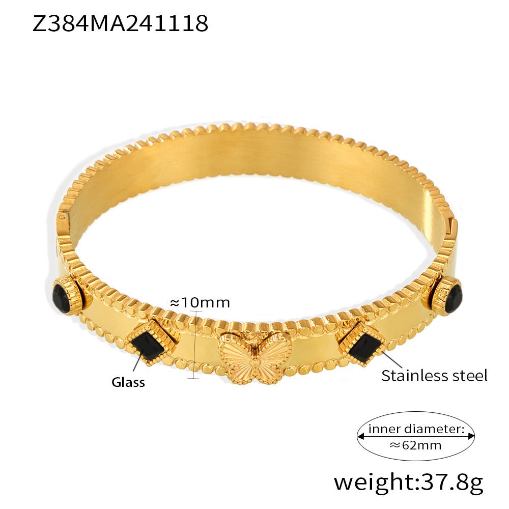 Golden Flower Butterfly Black Glass Stone Bracelet