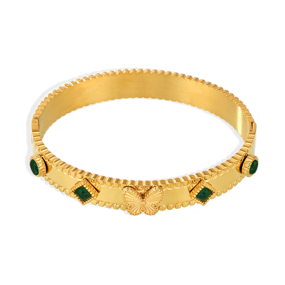 Golden Flower Butterfly Green Glass Stone Bracelet