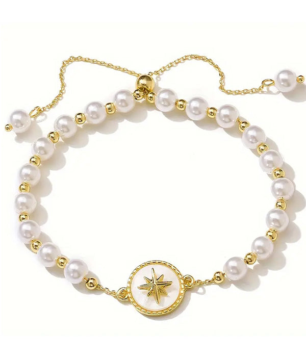 PEARL CHAIN PULLTIE BRACELET : Size- ADJUSTABLE : Color- GDWH