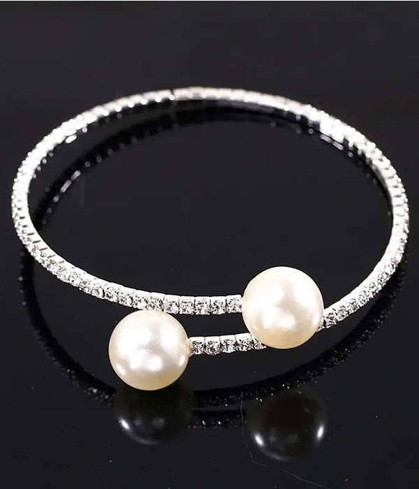 RHINESTONE AND PEARL BRACELET : Size- FLEXIBLE : Color- SL